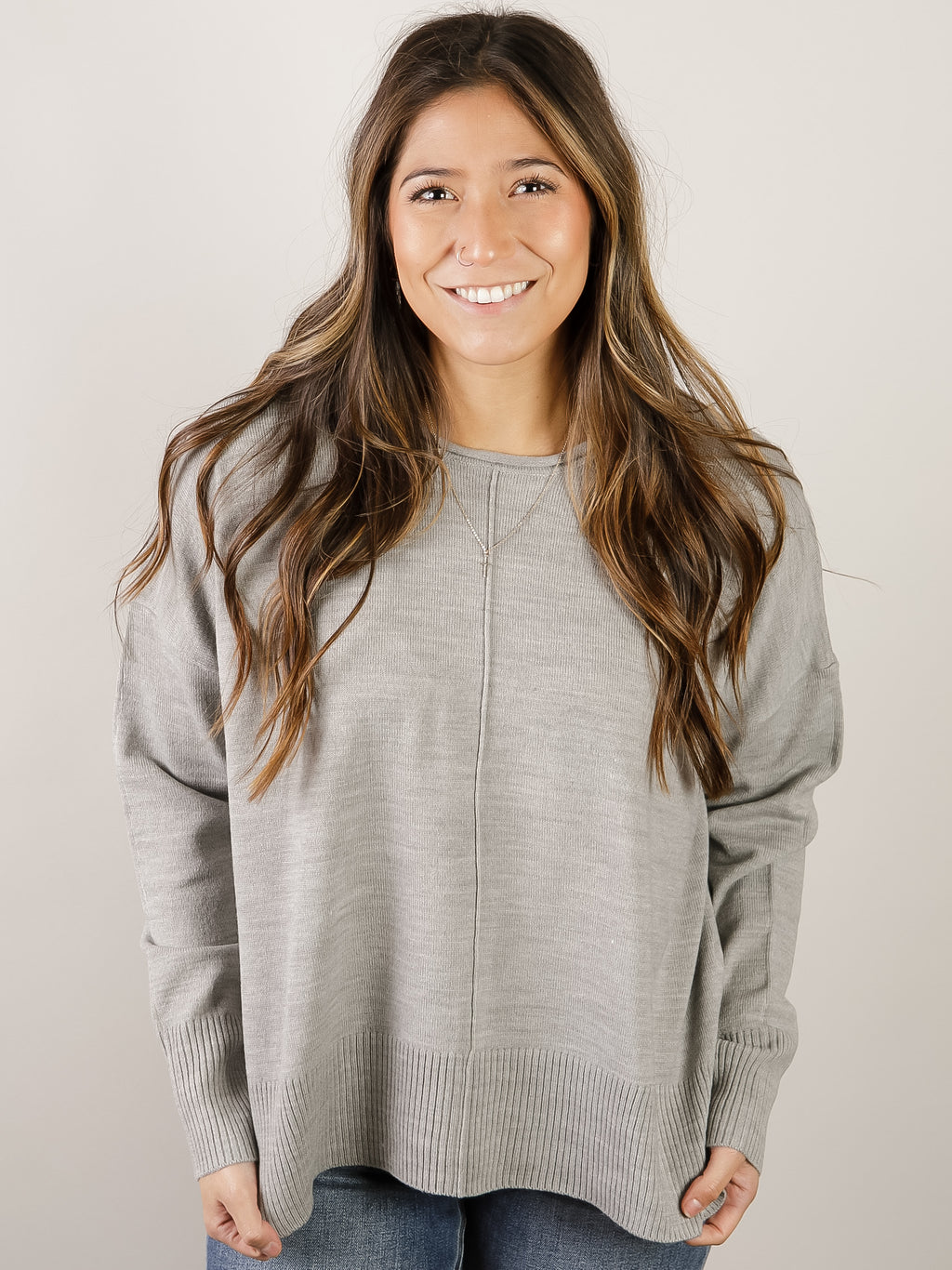 Grey Round Neck Drop Shoulder Sweater