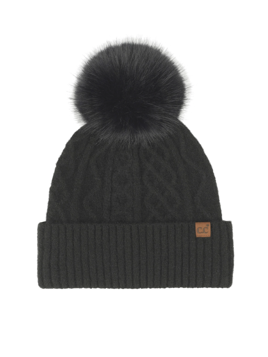 Cable Knit Pom Pom Beanie (Multiple Colors)
