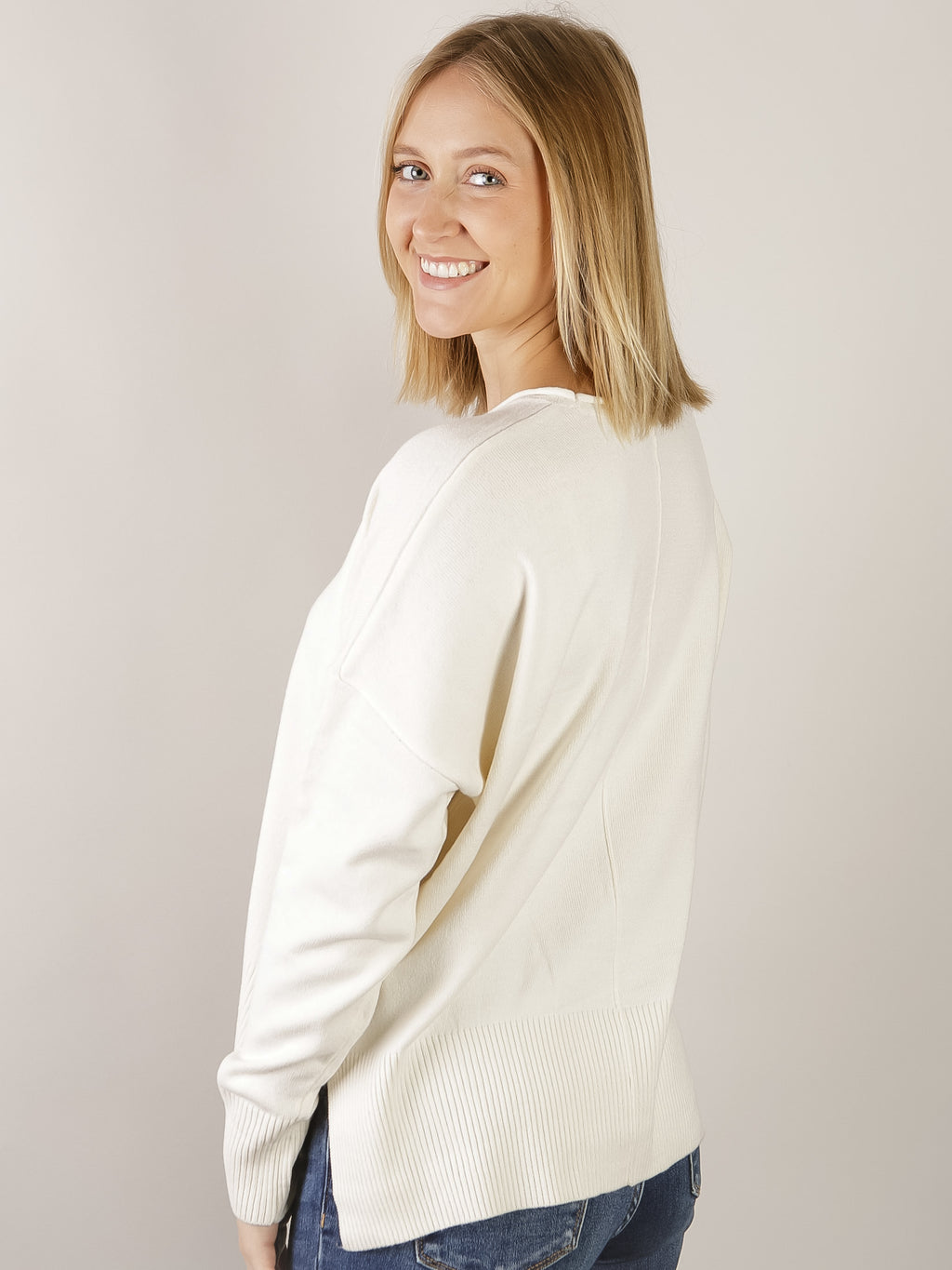 Cream Round Neck Drop Shoulder Sweater