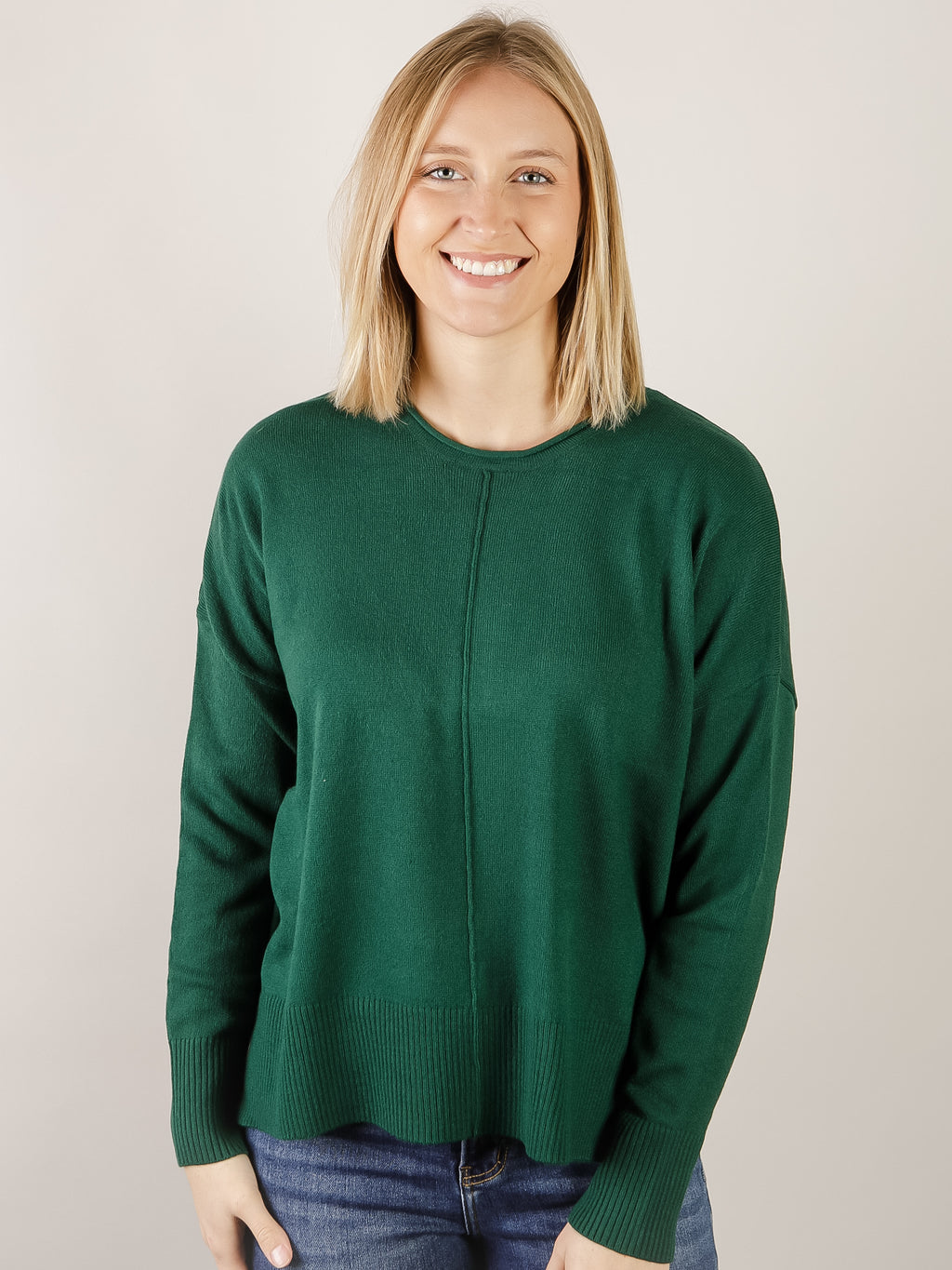 Green Round Neck Drop Shoulder Sweater