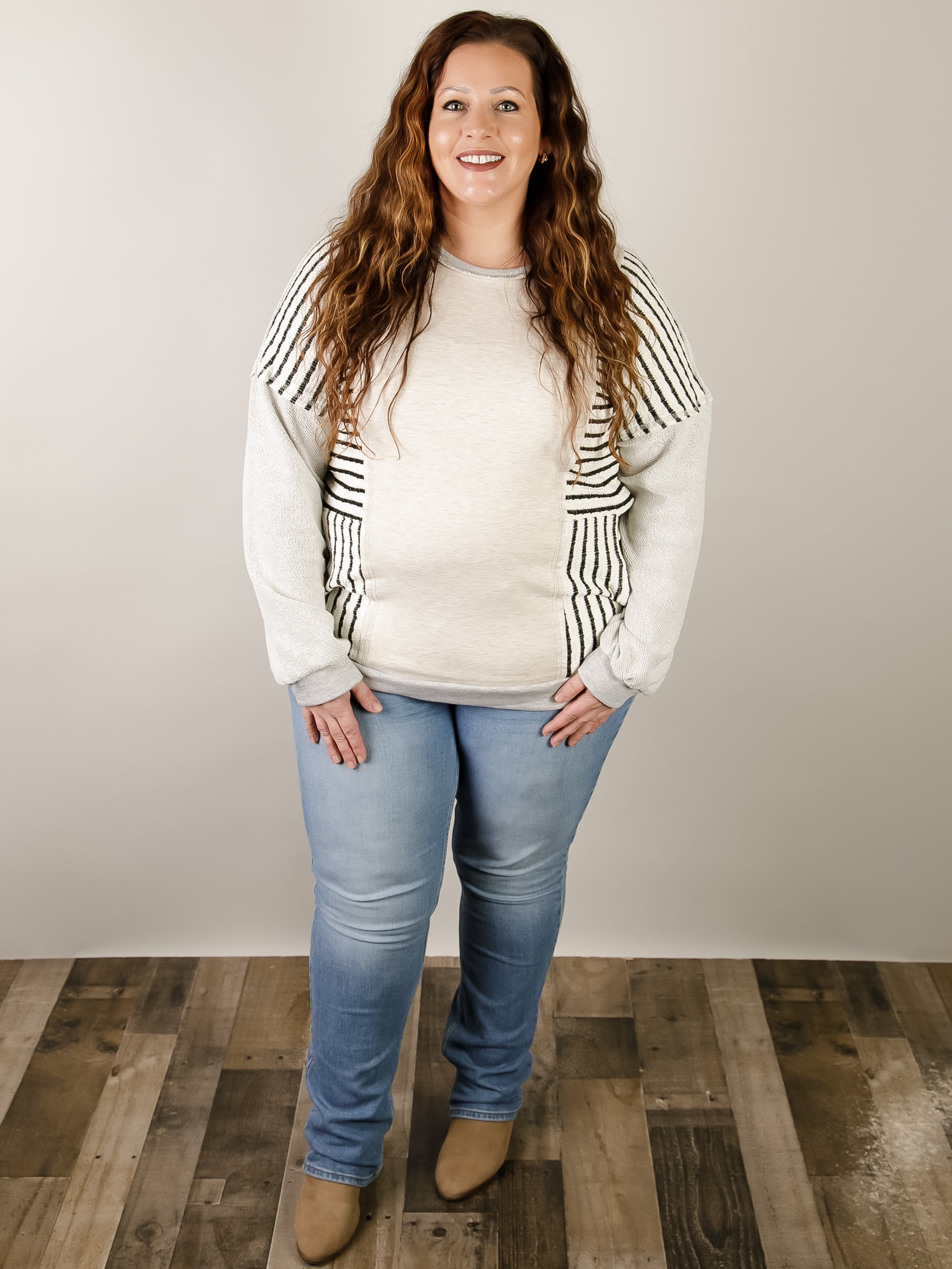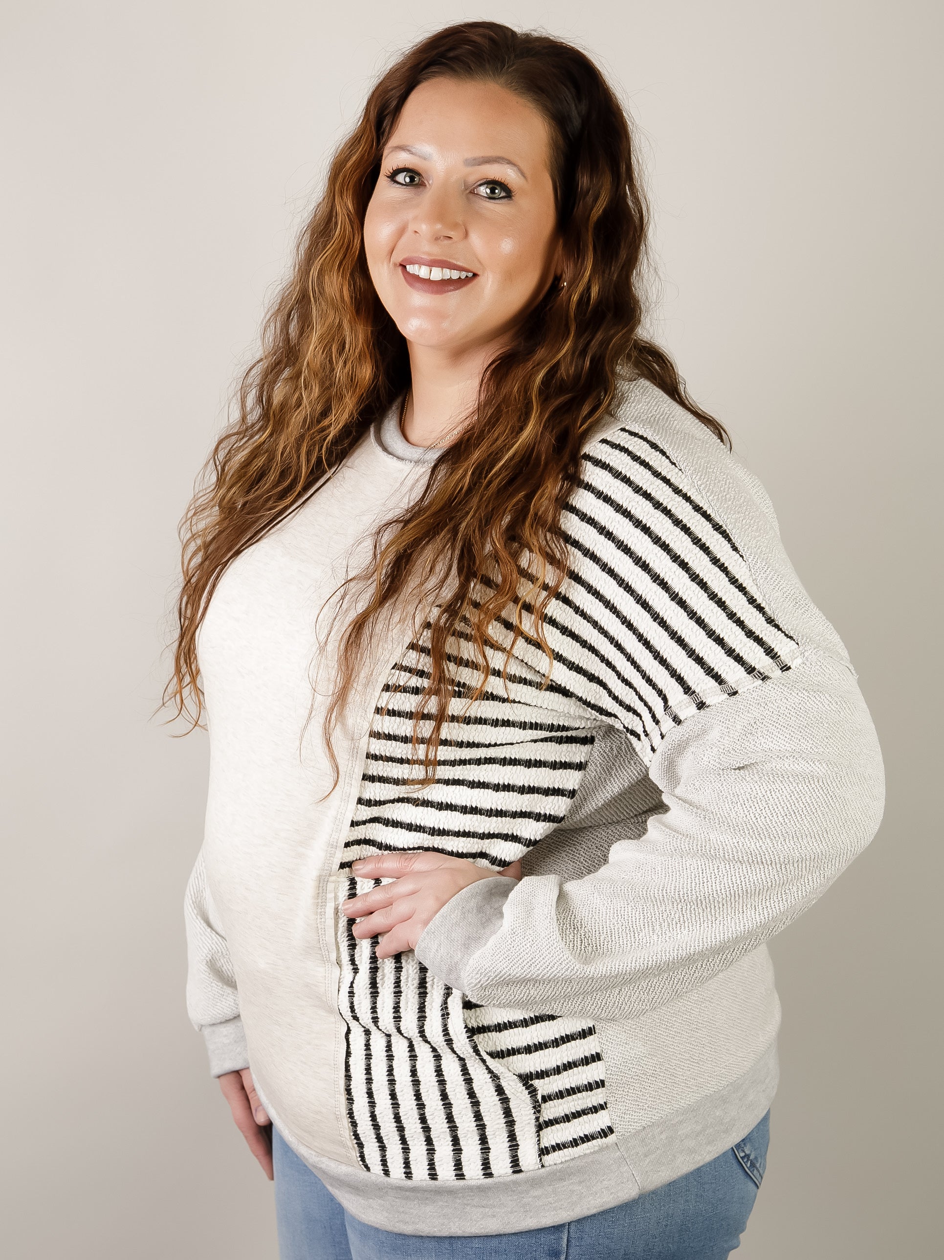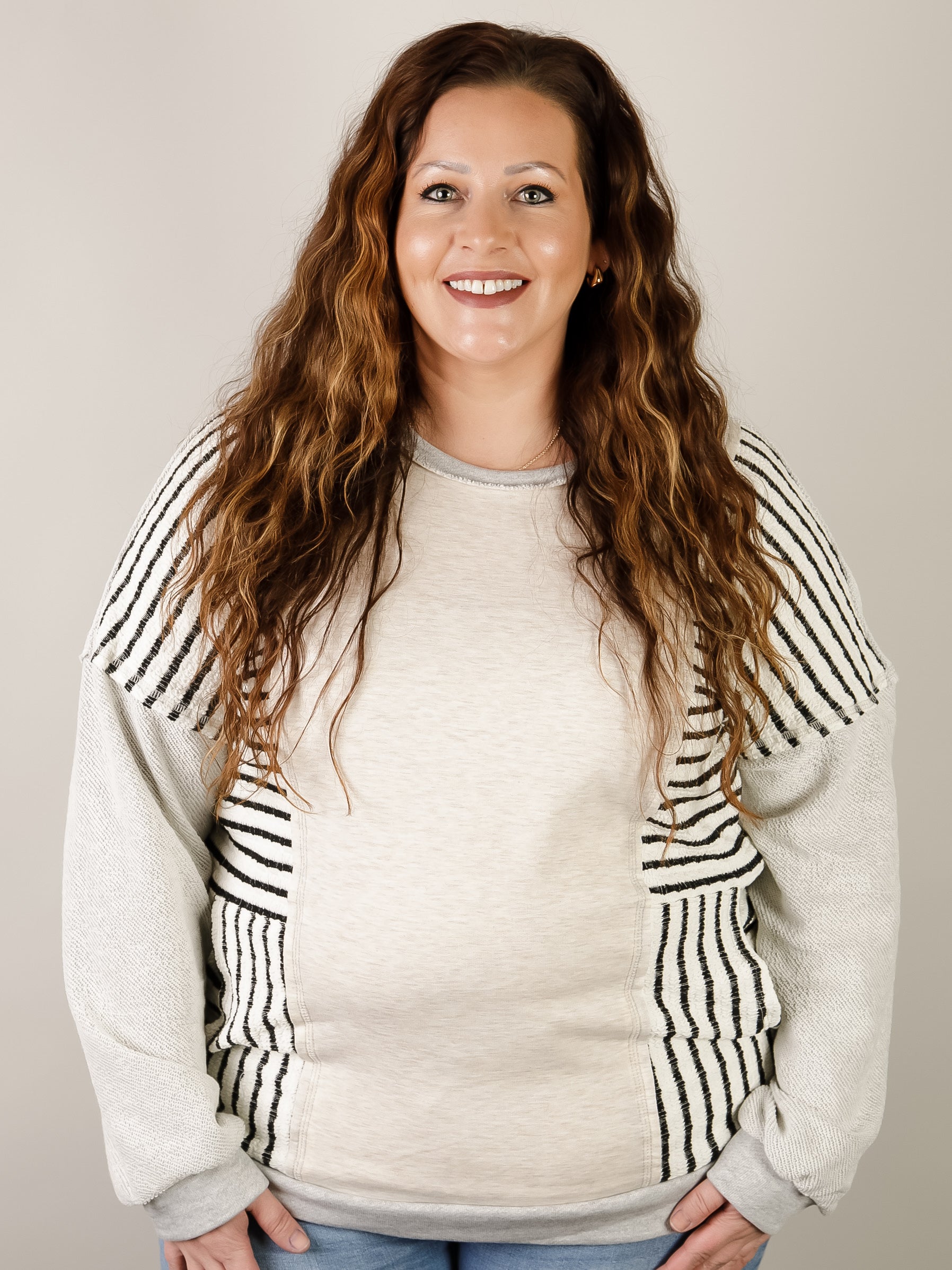 This grey and black striped long sleeve is your go-to for effortless everyday style. The soft, lightweight fabric feels amazing against your skin and pairs beautifully with denim for a classic look or oversized with leggings for relaxed comfort. Versatile enough for any day, any way you wear it.