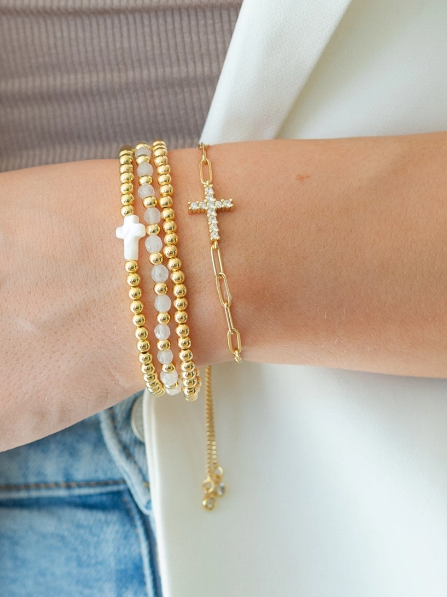 Faith & Cross & Pearl Stretch Bracelet Stack Set (Multiple Colors)