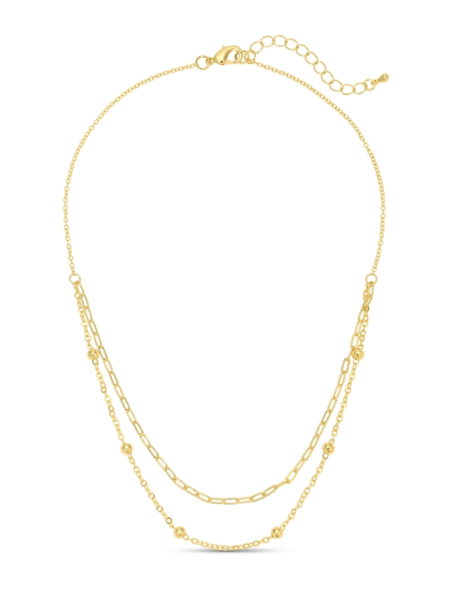 Beautifully accentuated double-layered necklace, featuring a ball-adorned delicate chain and a delicate linked chain layer. -14" Length (Shortest)