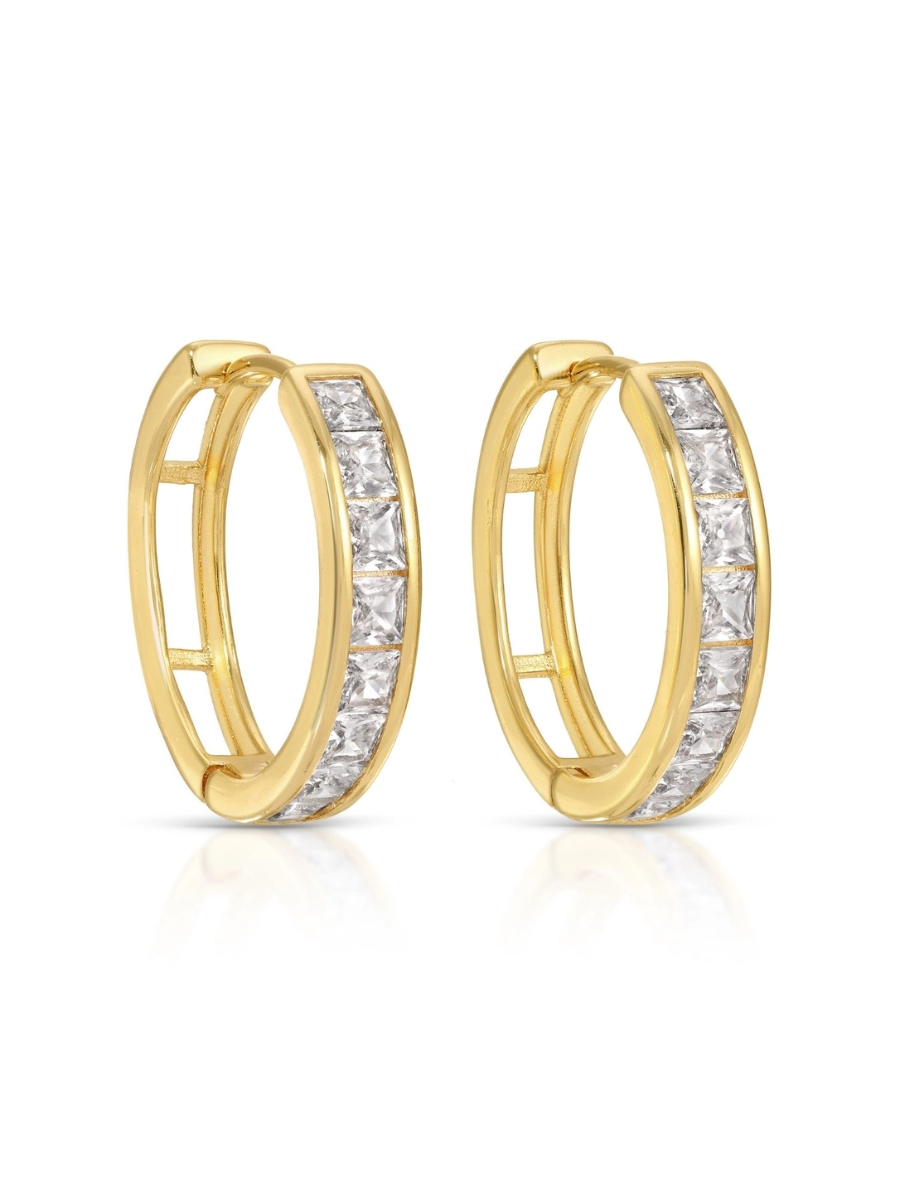 These gold plated cz huggie earrings are comfortable and effortlessly elevate your look with their sophisticated charm.