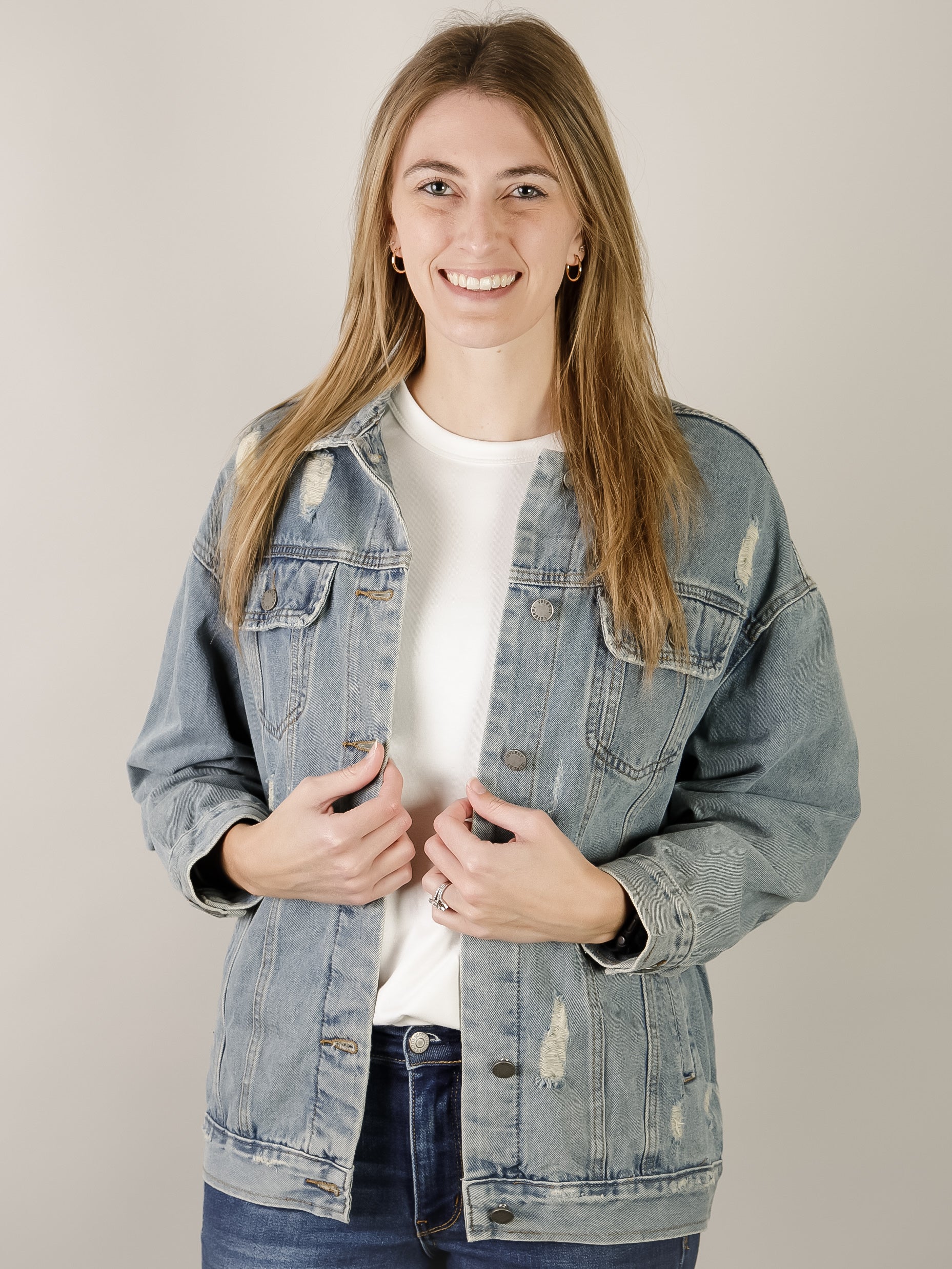 Medium Wash Distressed Denim Jacket