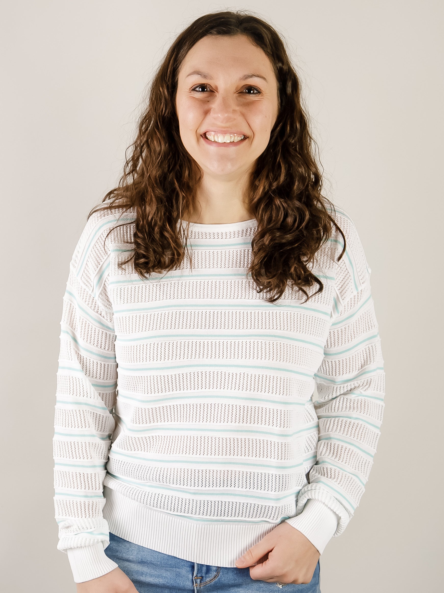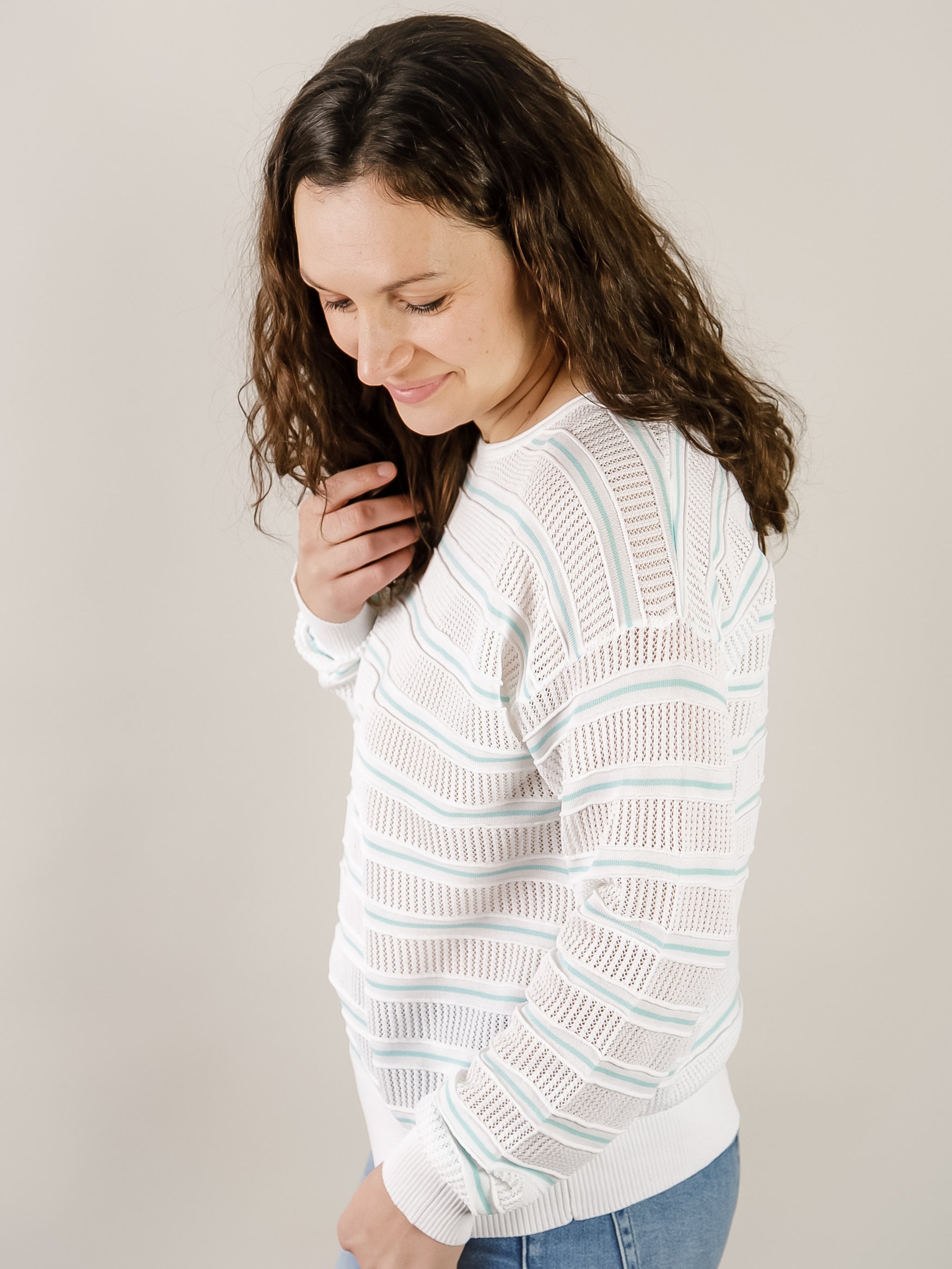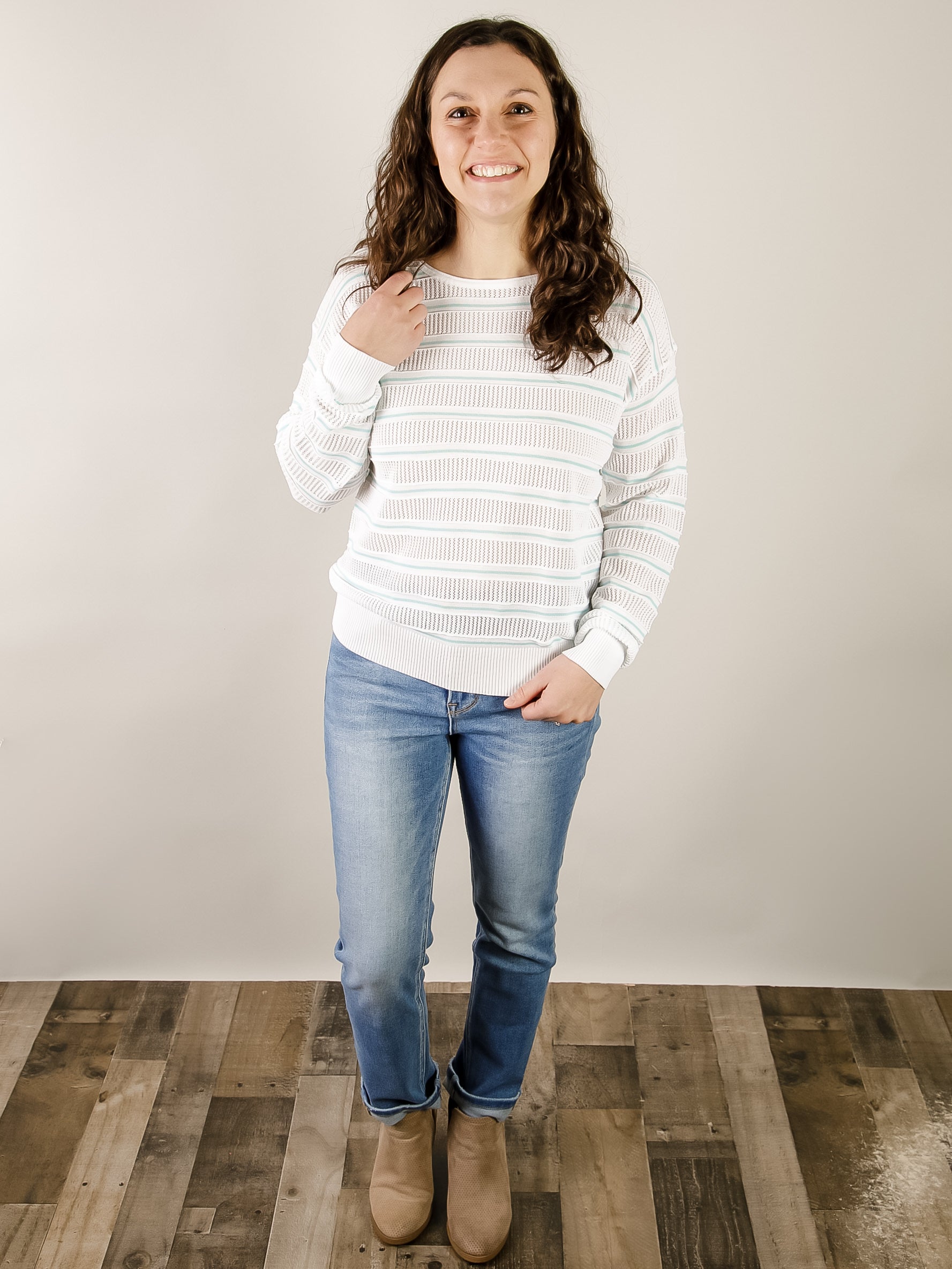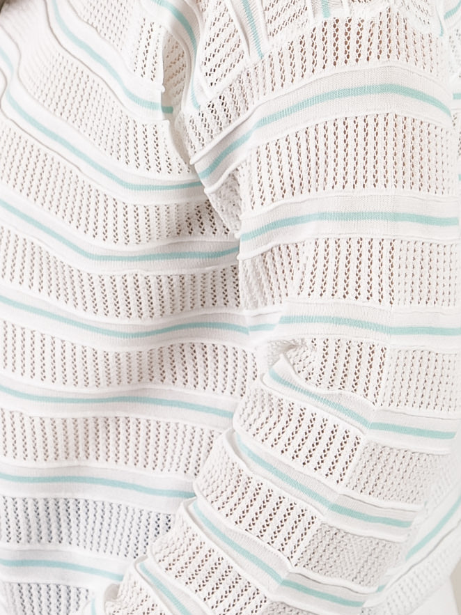Mint and White Striped Pointelle Sweater