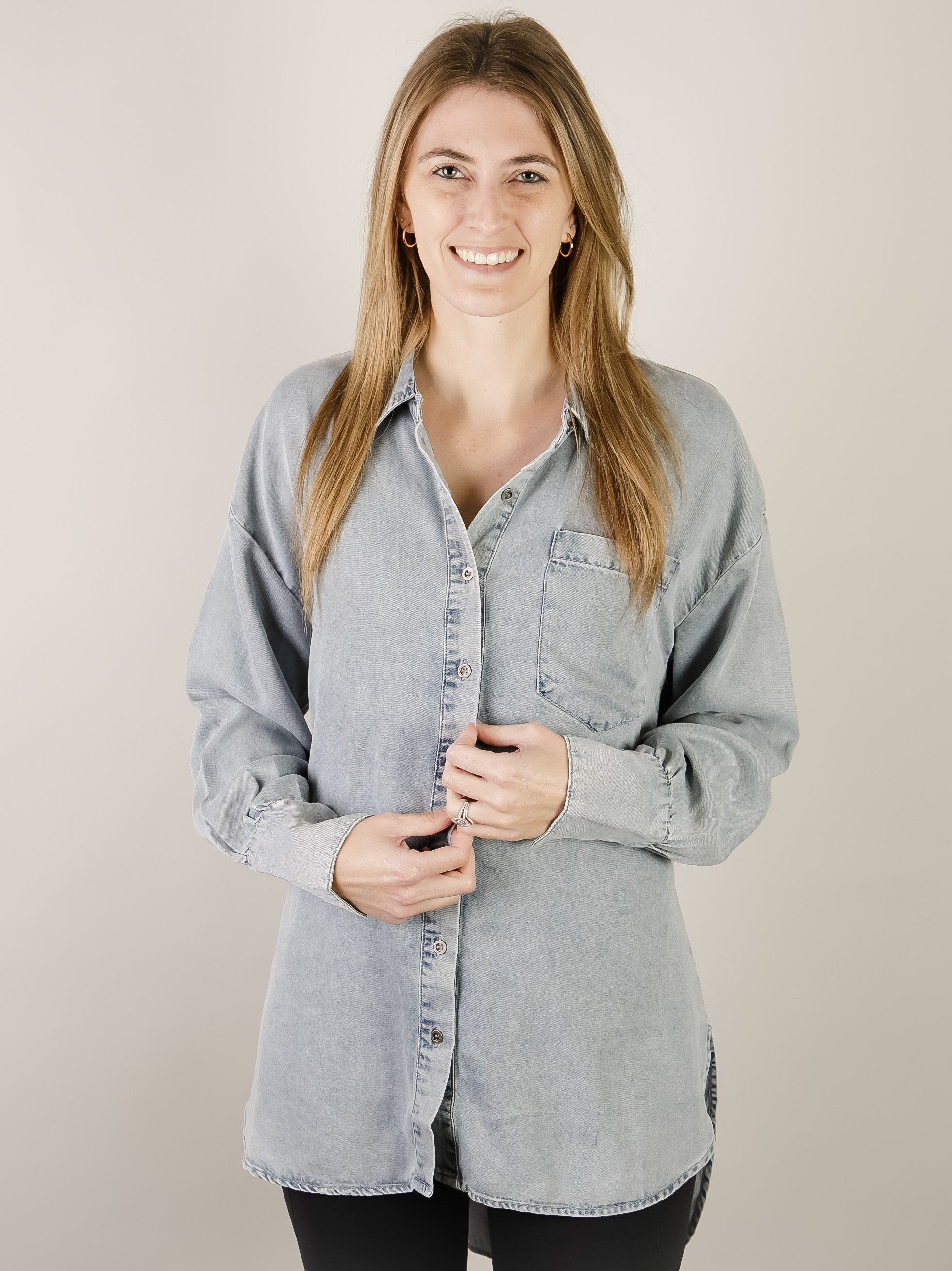 Oversized Denim Tencel Button Up