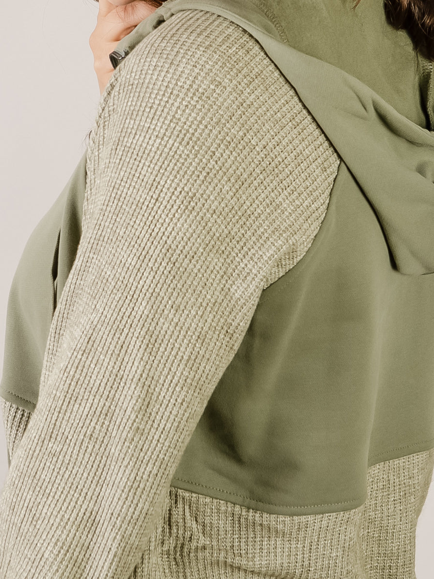 Sage Ribbed and Fleece Hooded Sweatshirt