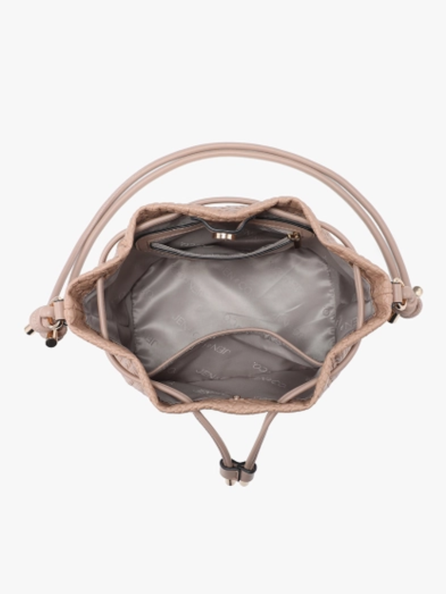 -Twisted Shoulder Strap: Unique design with metal accent detailing.