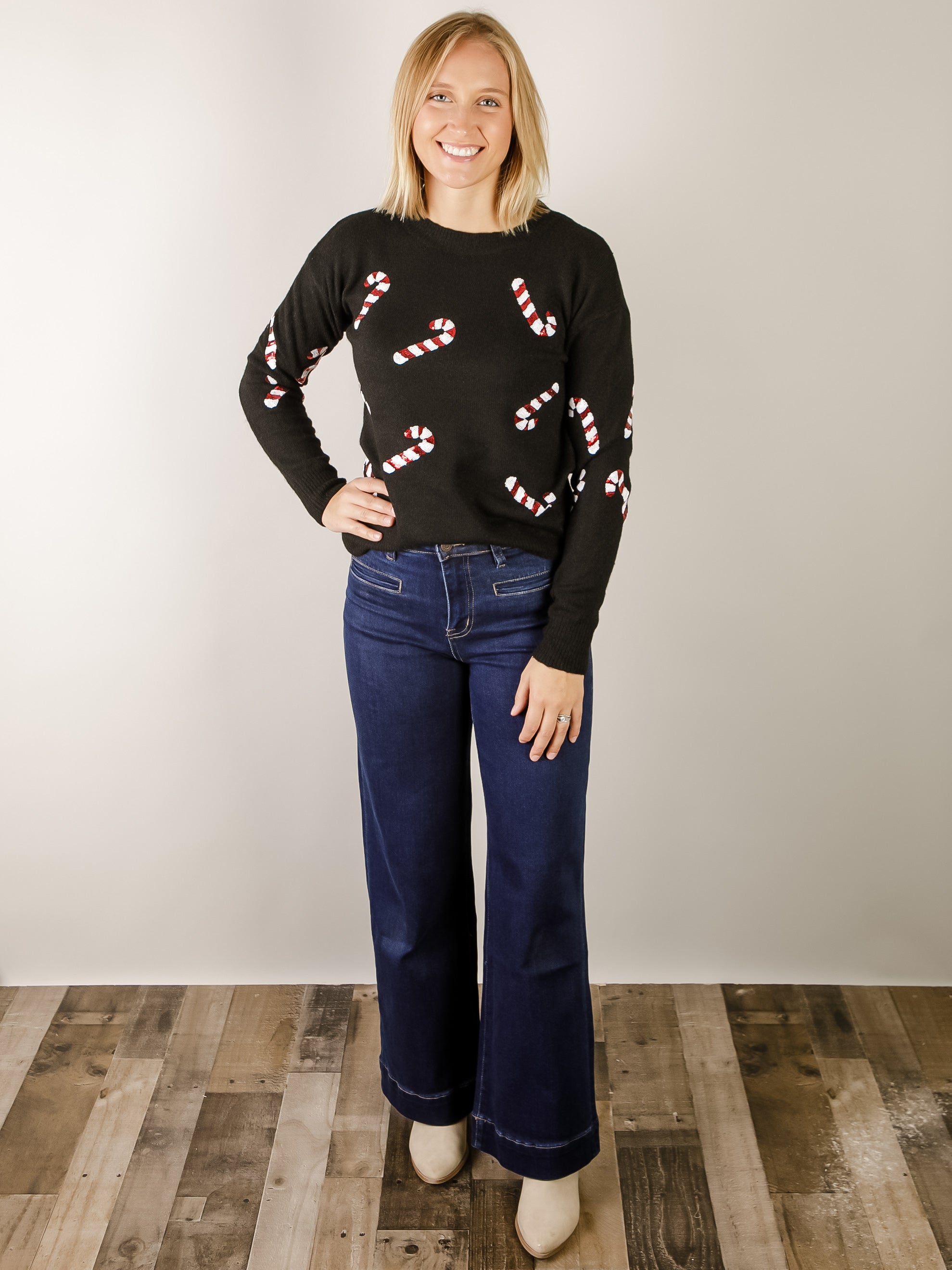 This sweater is sure to not last long! It's comfortable and perfect for the Holiday season!