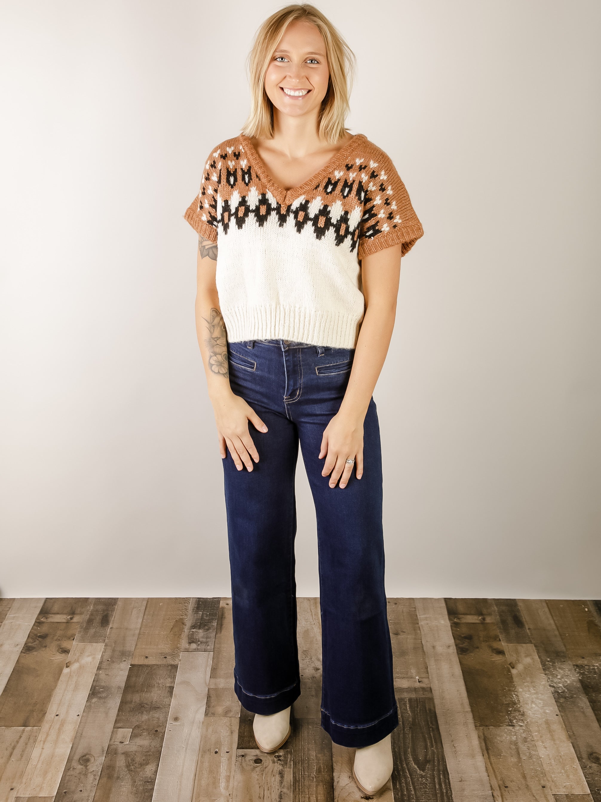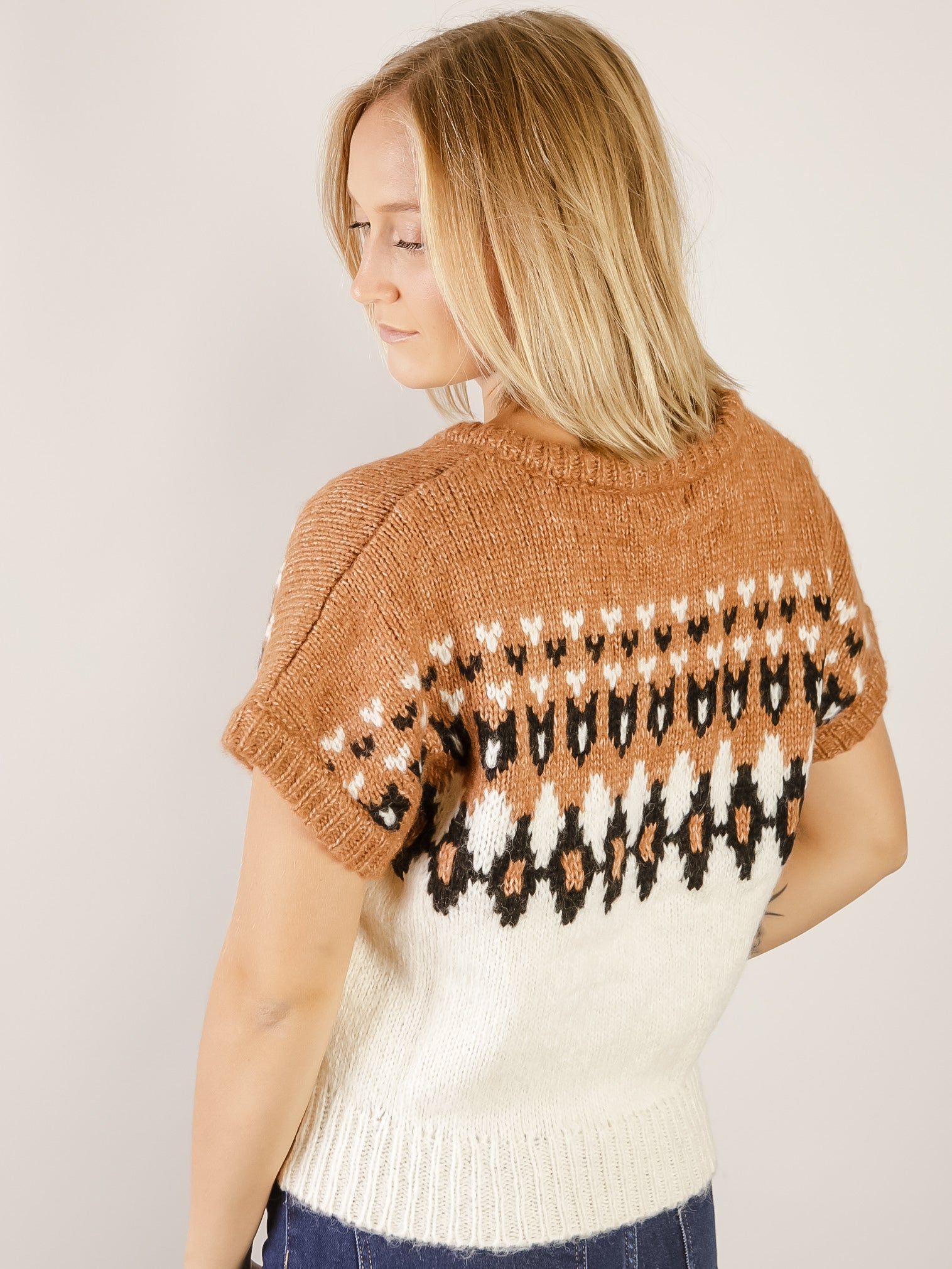 Fair Isle V-Neck Short Sleeve Sweater Vest
