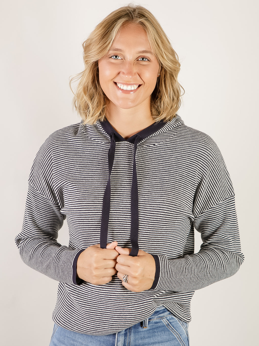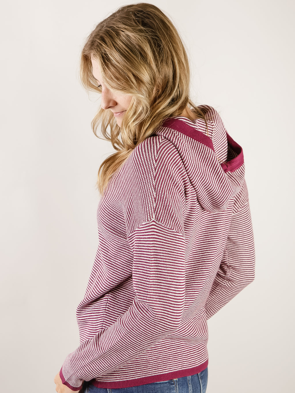 Dark Magenta Waffle Textured Striped Hooded Sweater