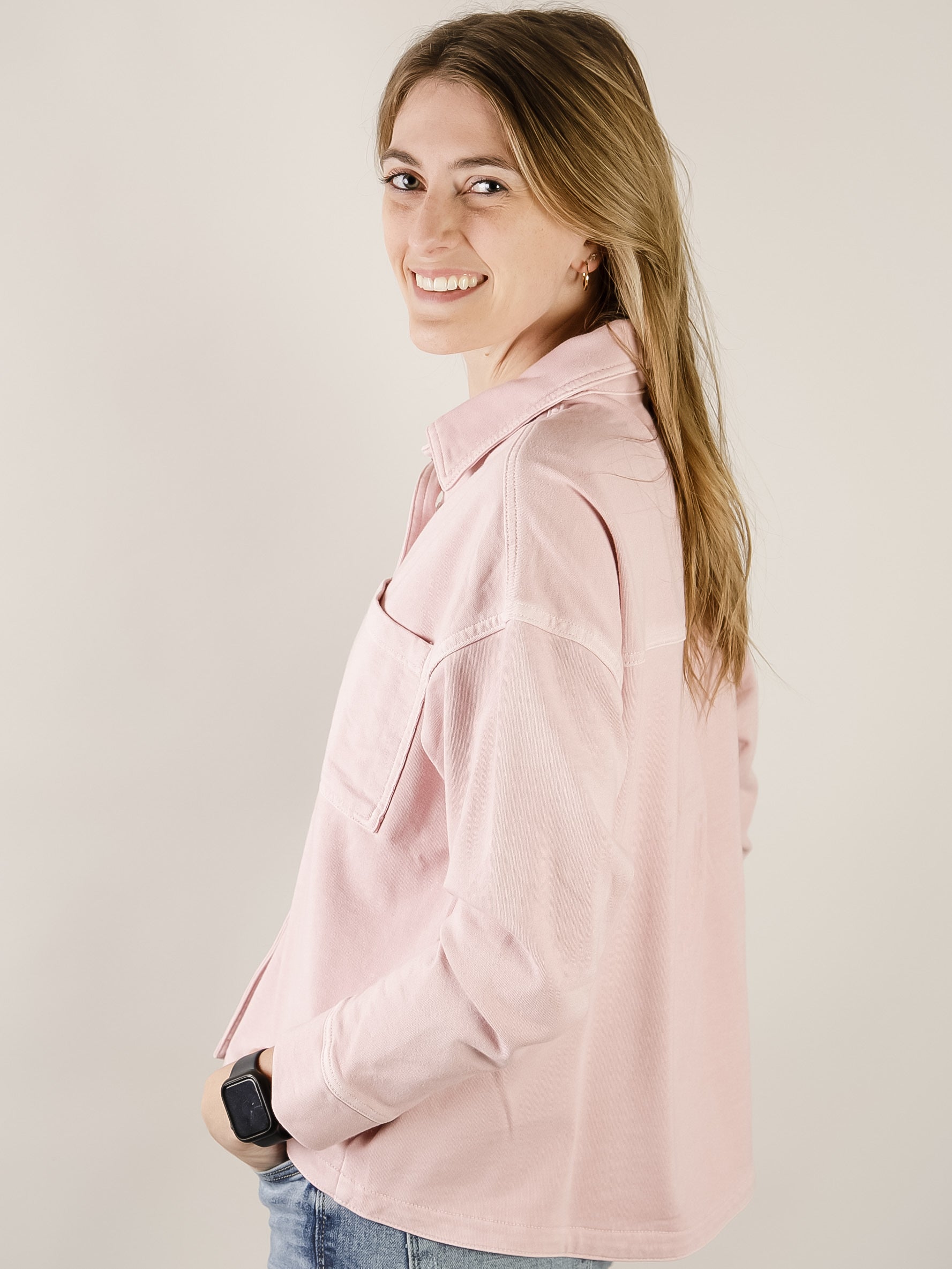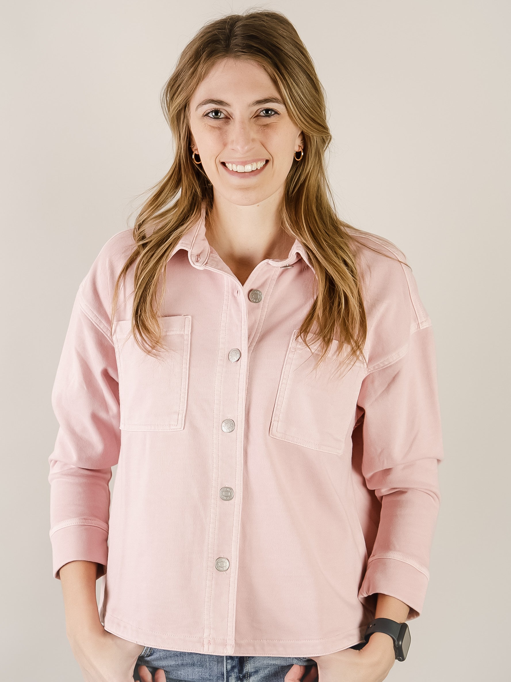 Dusty Pink Knit Denim Shacket