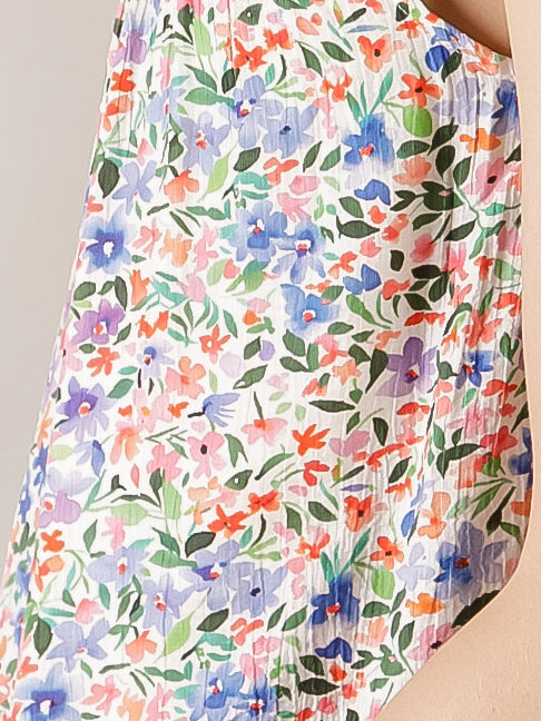 Coral and Blue Floral Print Sleeveless Blouse