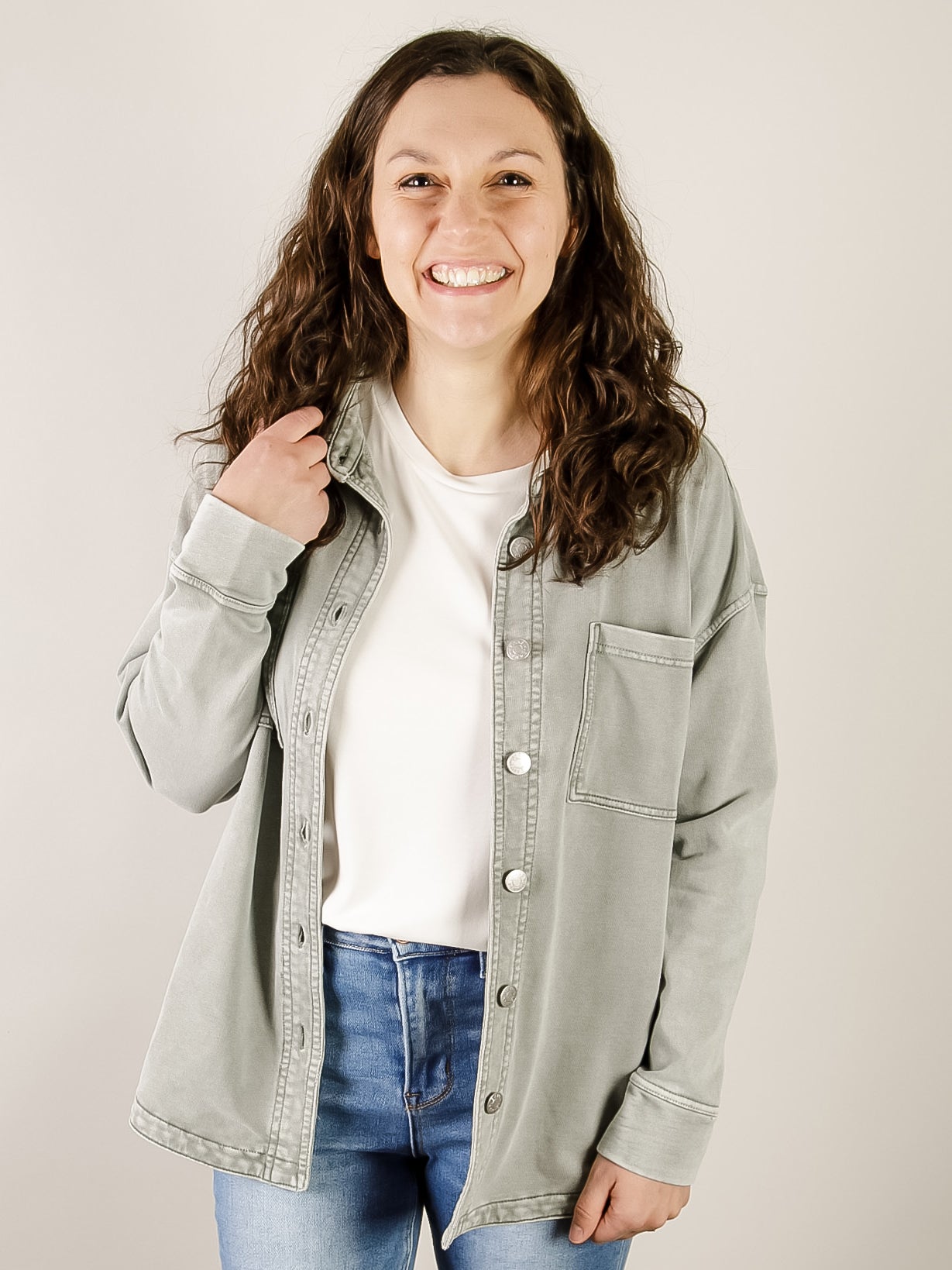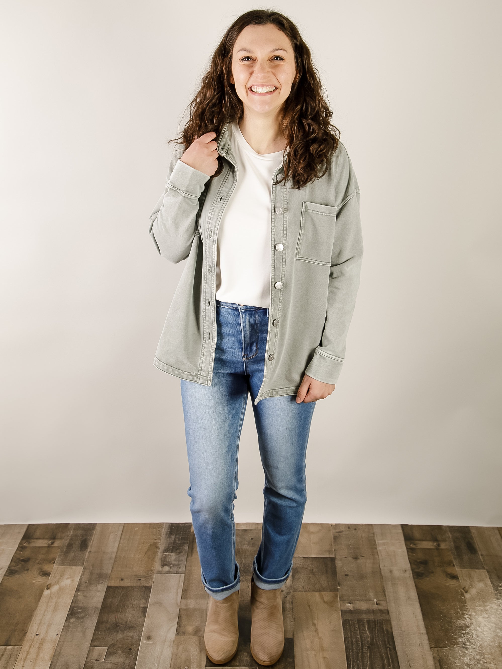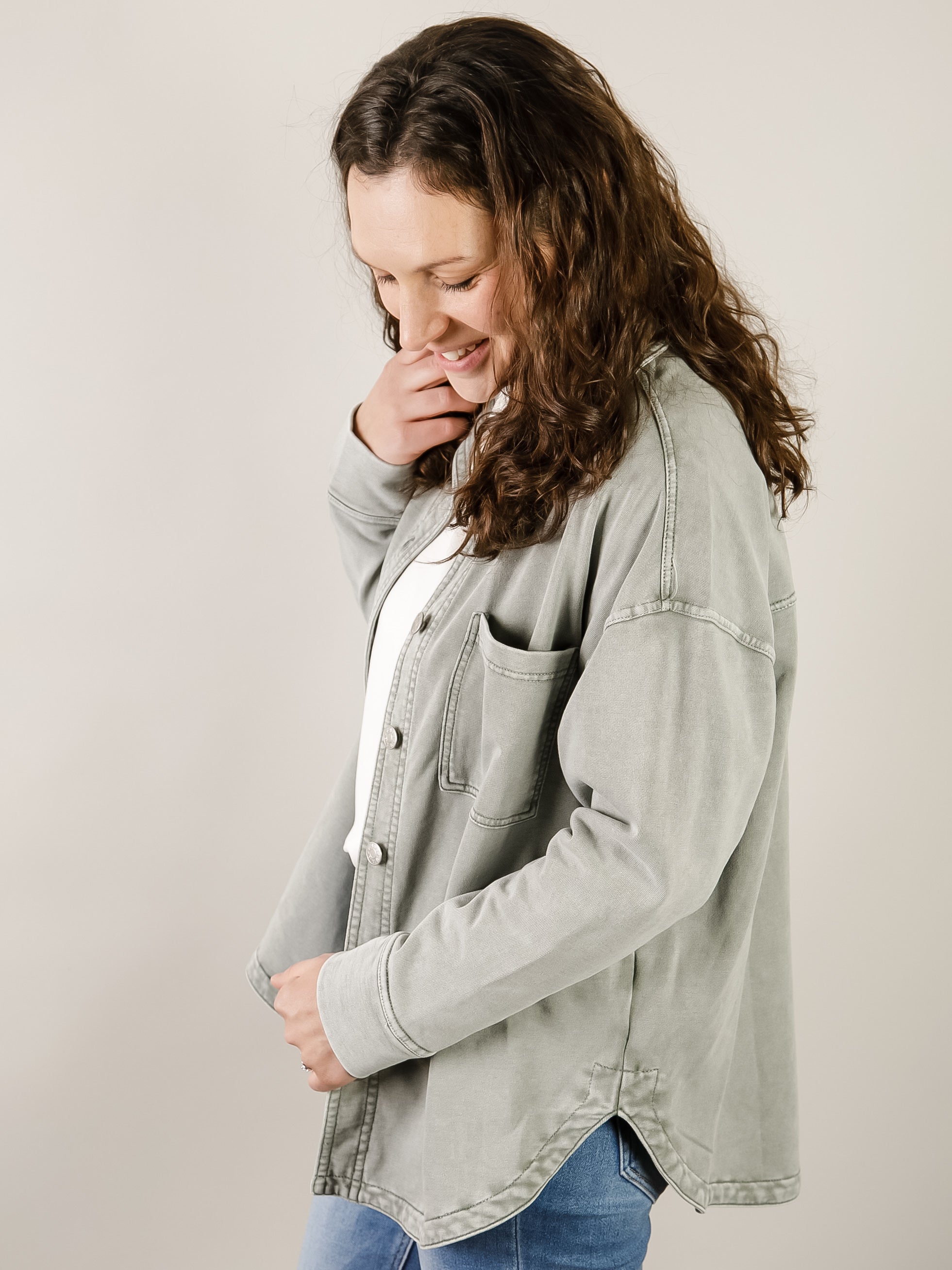 Dusty Sage Knit Denim Shacket
