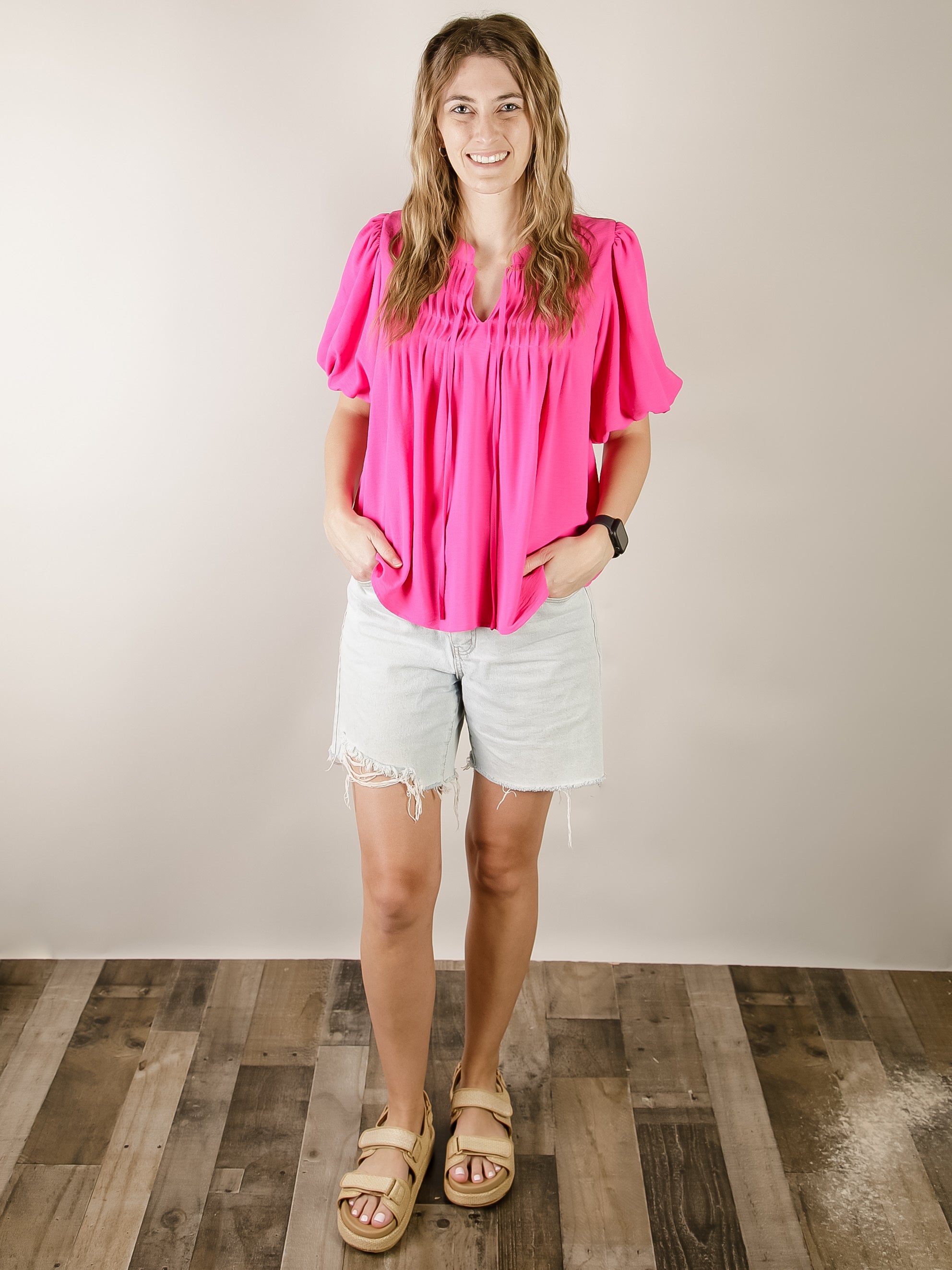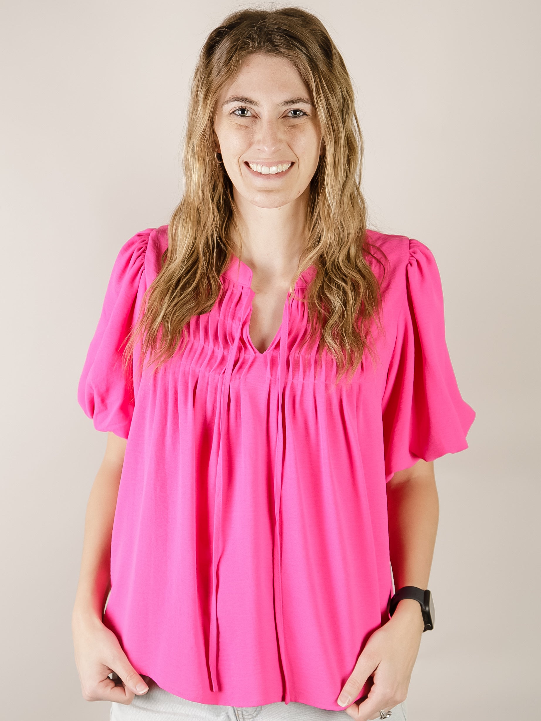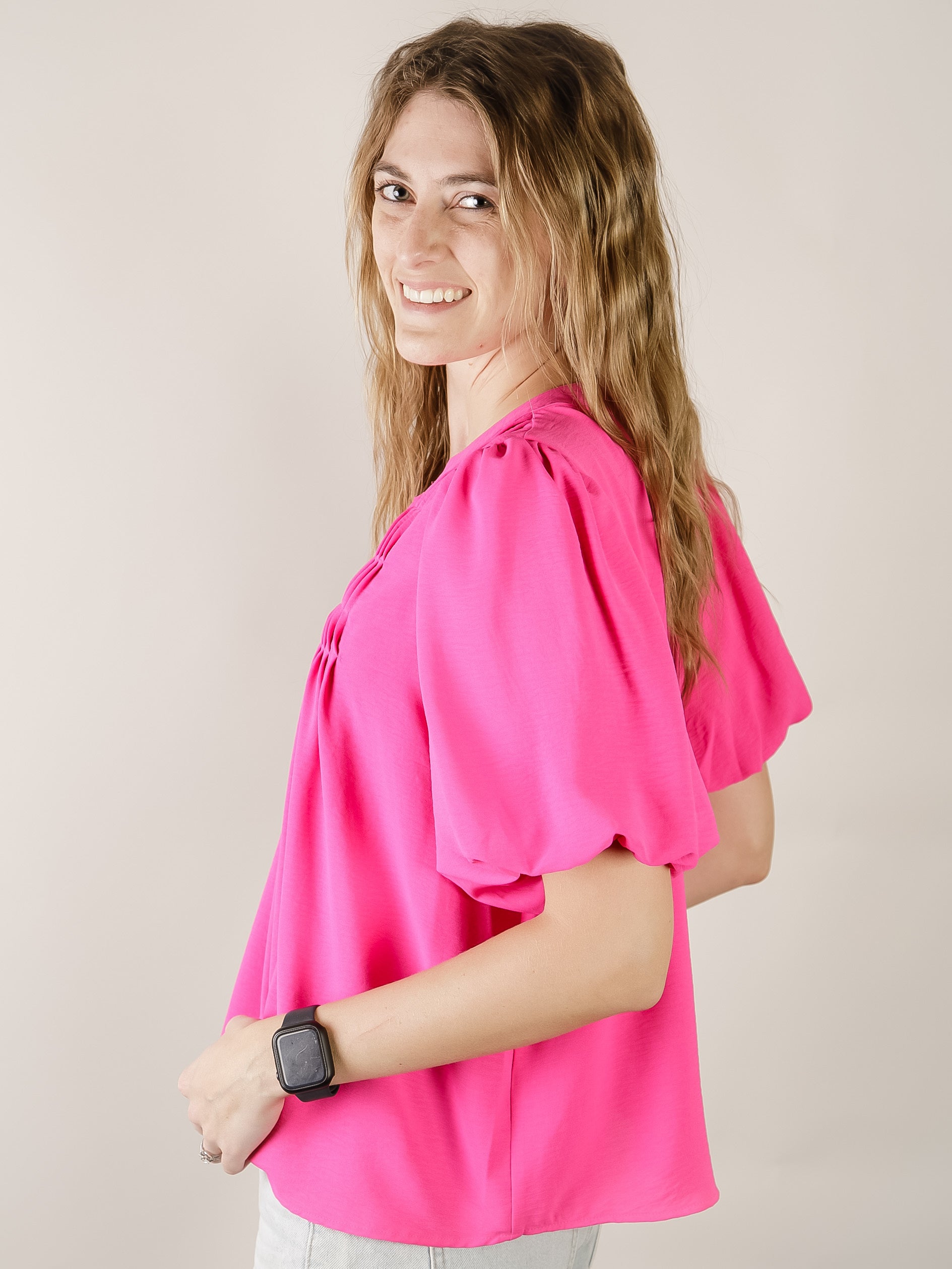 Hot Pink Puff Sleeve Blouse